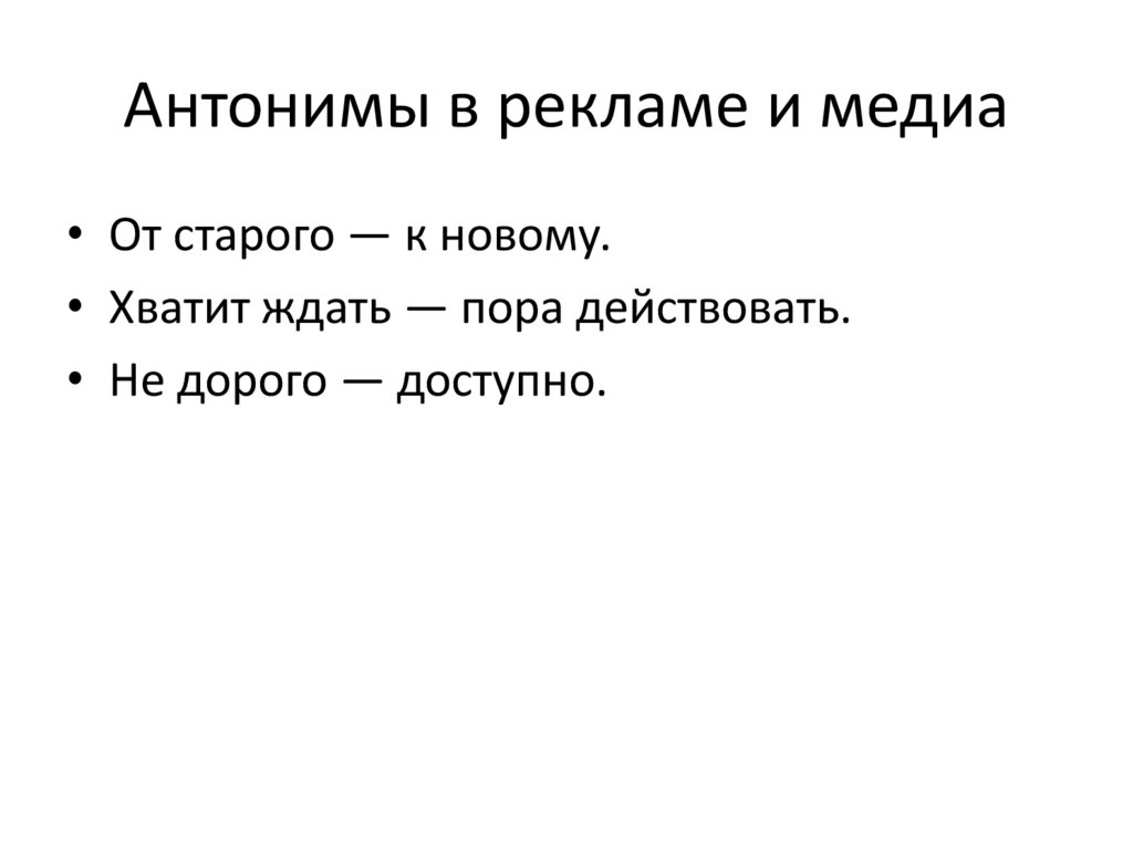 Антонимы в рекламе и медиа• От старого — к новому.