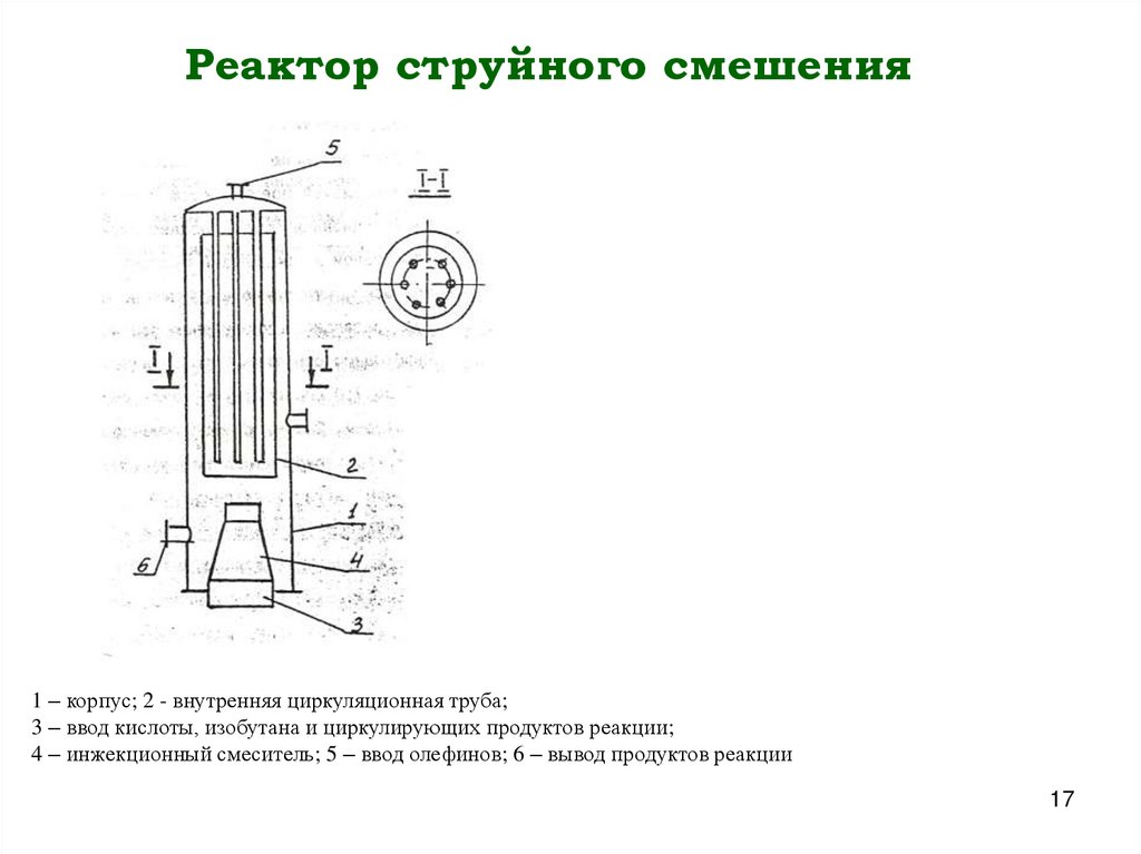 4 – инжекционный смеситель; 5 – ввод олефинов; 6 – вывод продуктов реакции