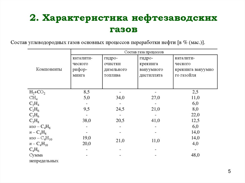 Состав углеводородных газов основных процессов переработки нефти [в % (мас.)].