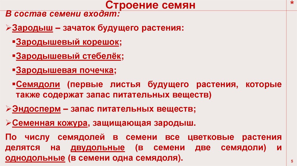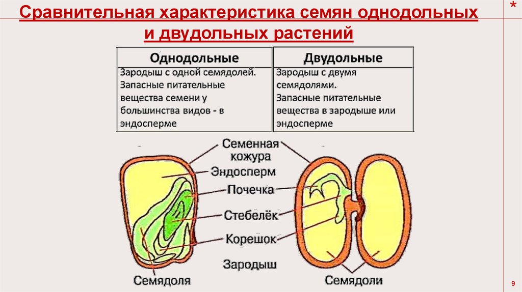 Сравнительная характеристика семян однодольныхи двудольных растений