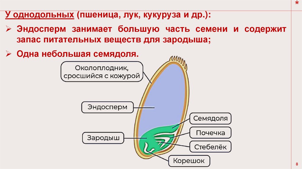 У однодольных (пшеница, лук, кукуруза и др.):*