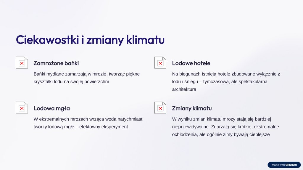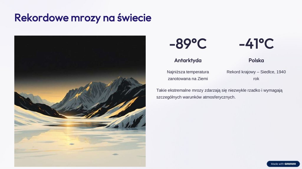 poniżej 0°C. Powoduje zamarzanie wody i tworzenie lodu.