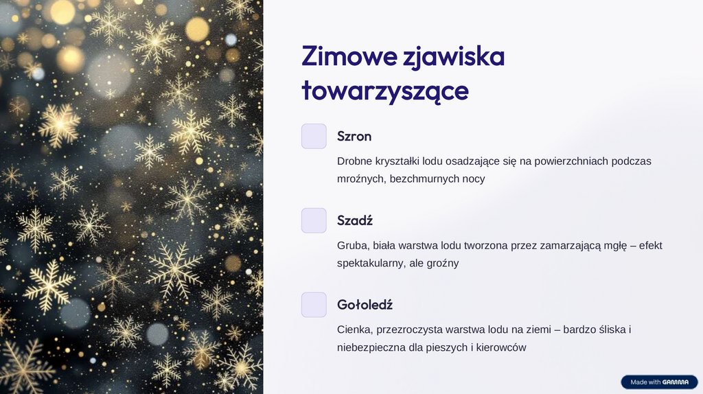 Wraz z mrozem pojawiają się charakterystyczne zjawiska zimowe, takie jak