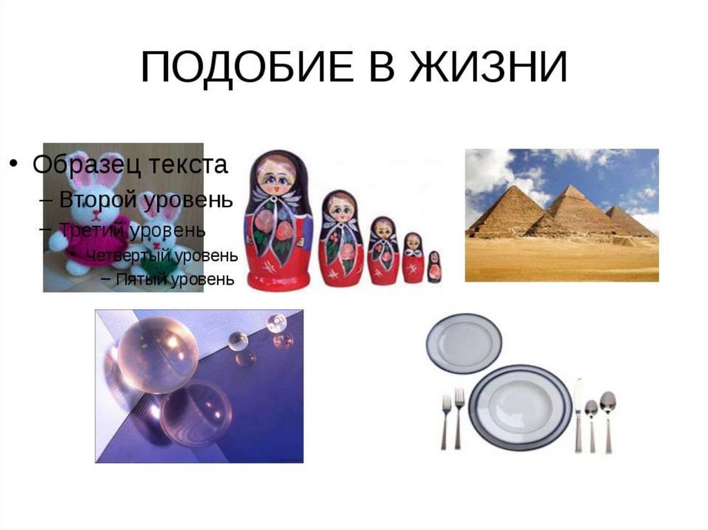 Фигуры принято называть подобными, если они имеютодинаковую форму (похожи по виду).