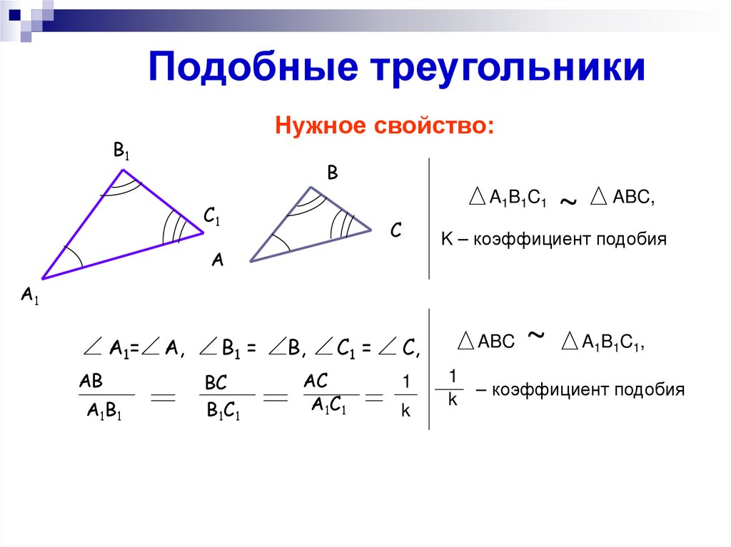 Определение: треугольники называются подобными, если углыодного треугольника равны углам другого треугольника