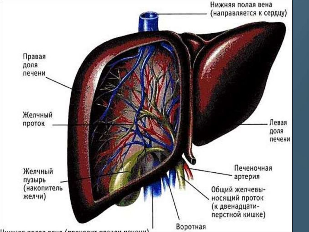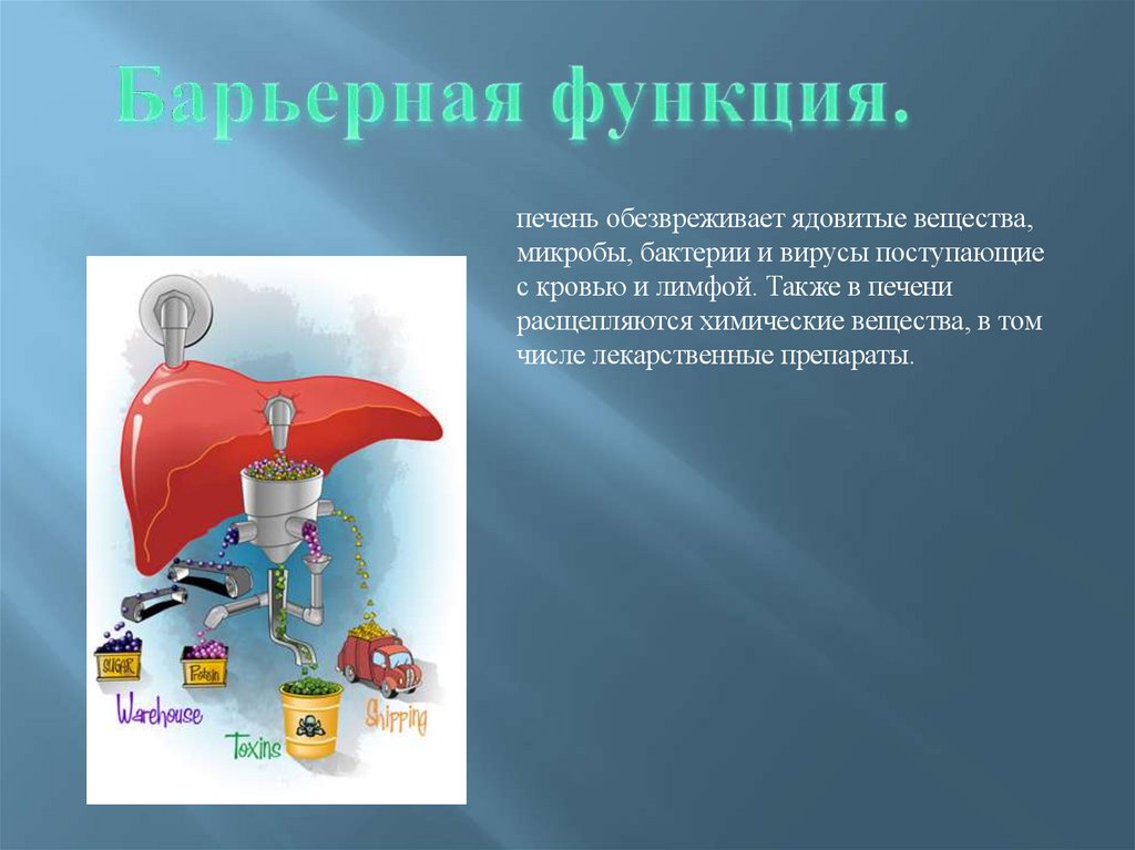 печень обезвреживает ядовитые вещества,микробы, бактерии и вирусы поступающие
