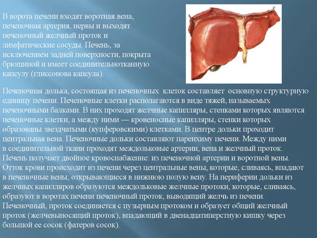 Печень получает двойное кровоснабжение: из печеночной артерии и воротной вены.