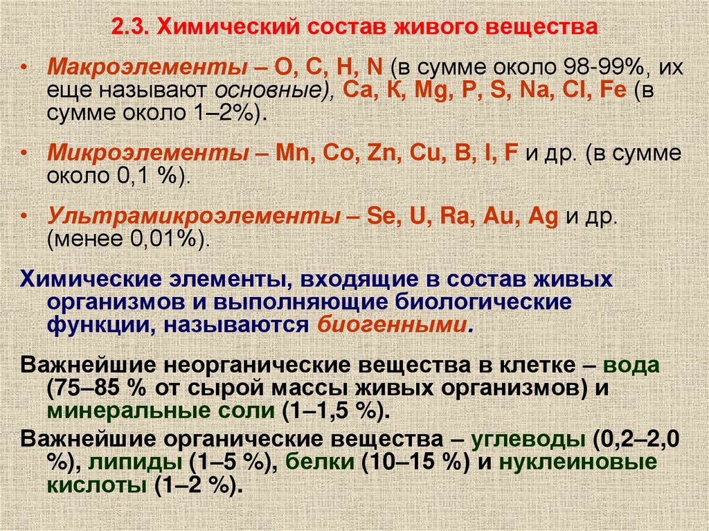 живых организмов.