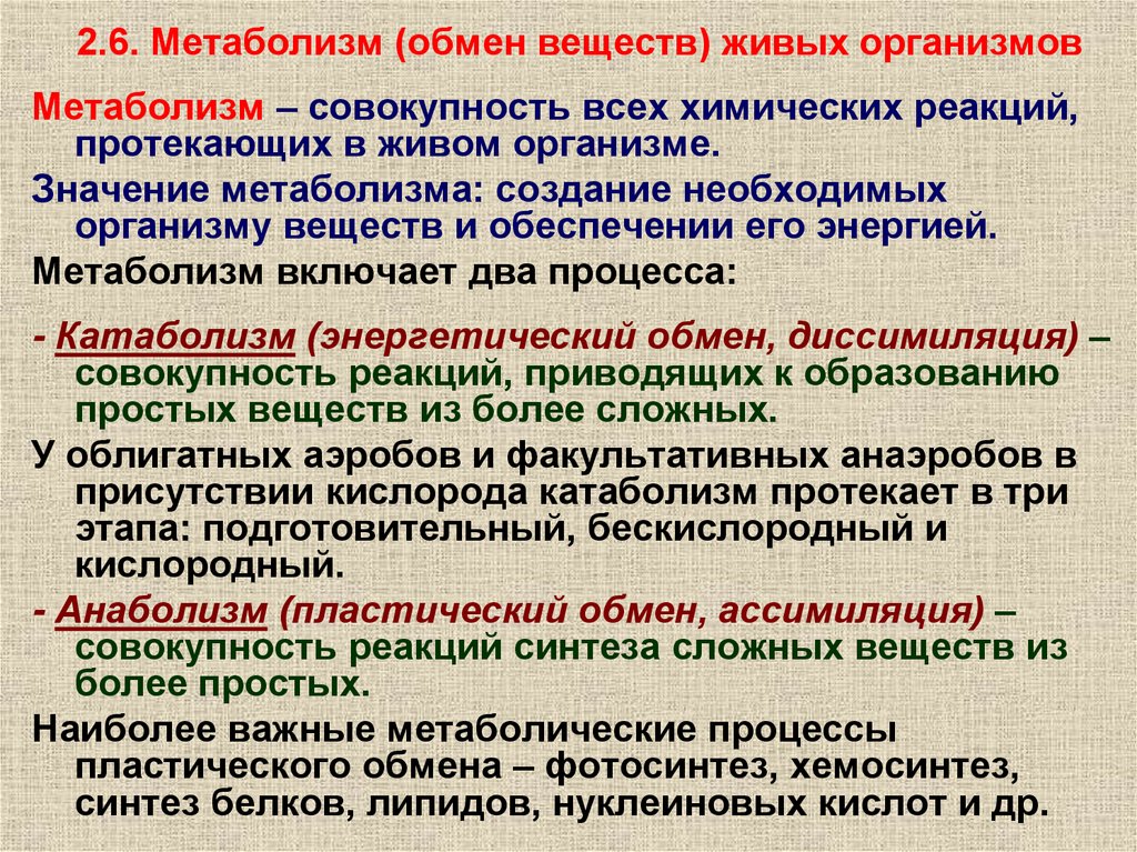 (обмен) веществ, движущей силой которого