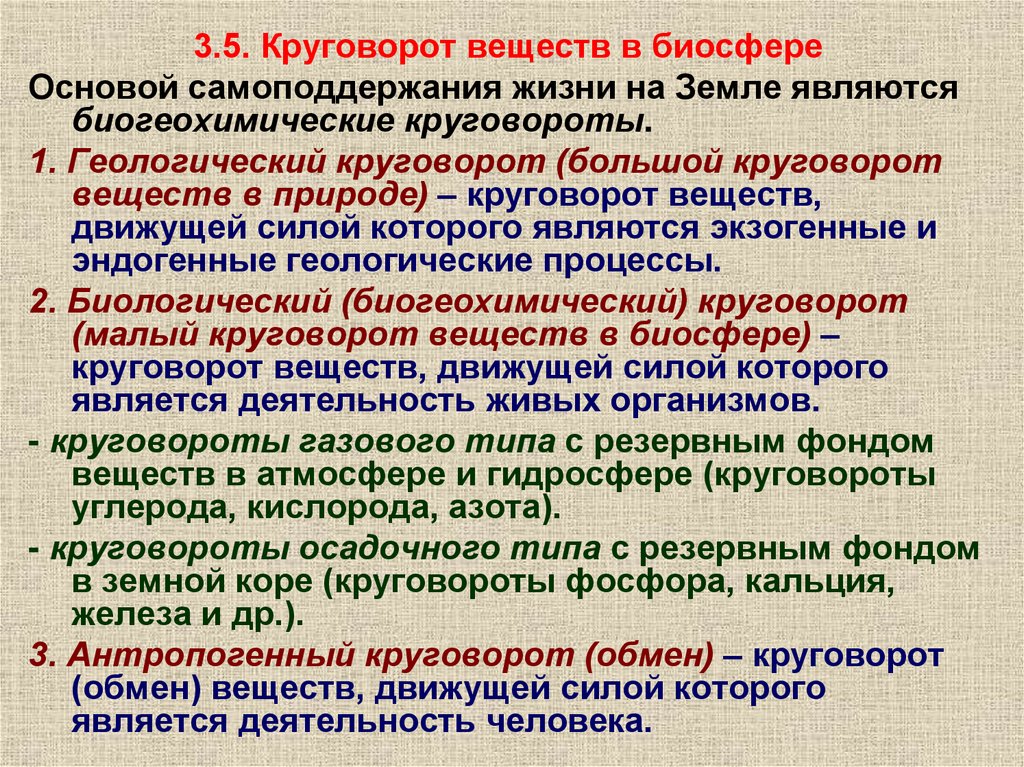 веществ в природе) – круговорот веществ,