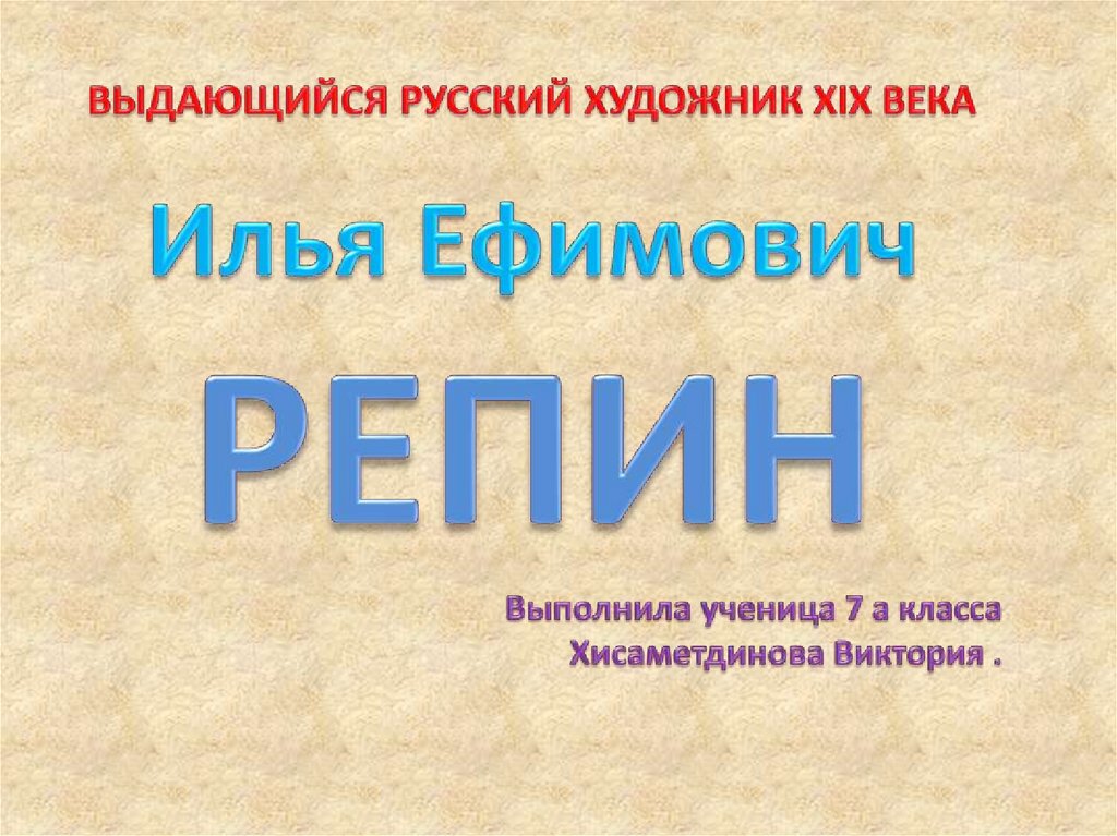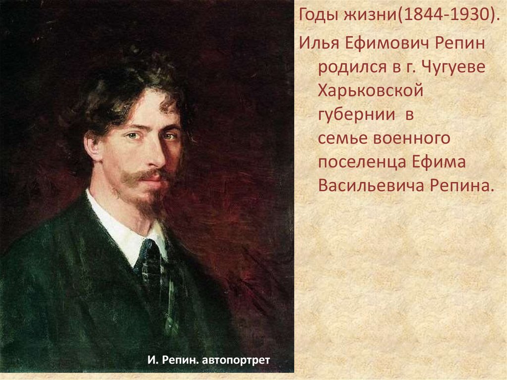Годы жизни(1844-1930).Илья Ефимович Репин
