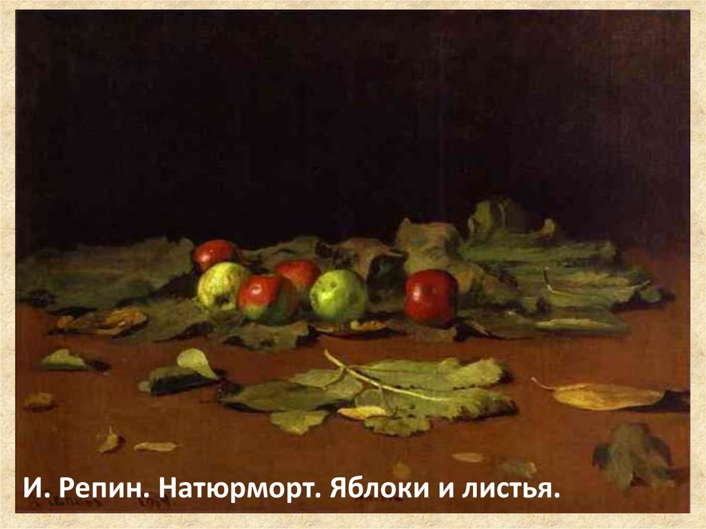 И. Репин. Натюрморт. Яблоки и листья.35.