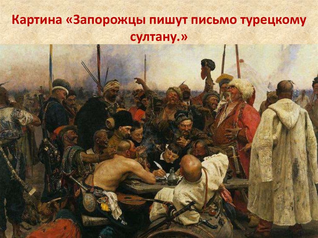 Картина «Запорожцы пишут письмо турецкомусултану.»
