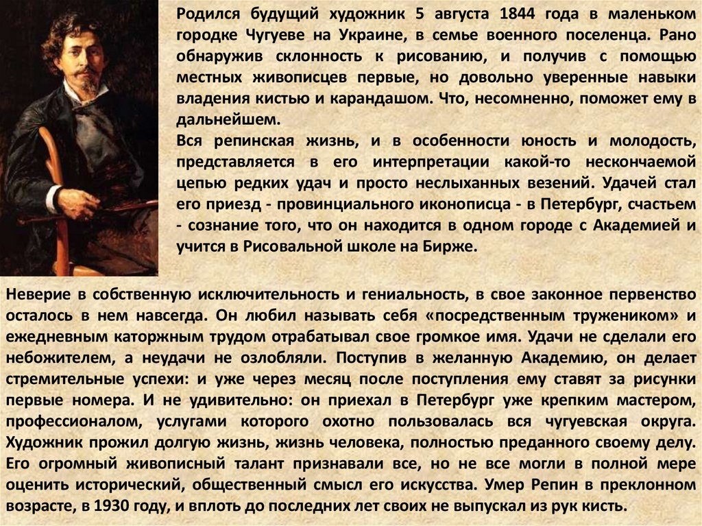 оценить исторический, общественный смысл его искусства. Умер Репин в преклонном