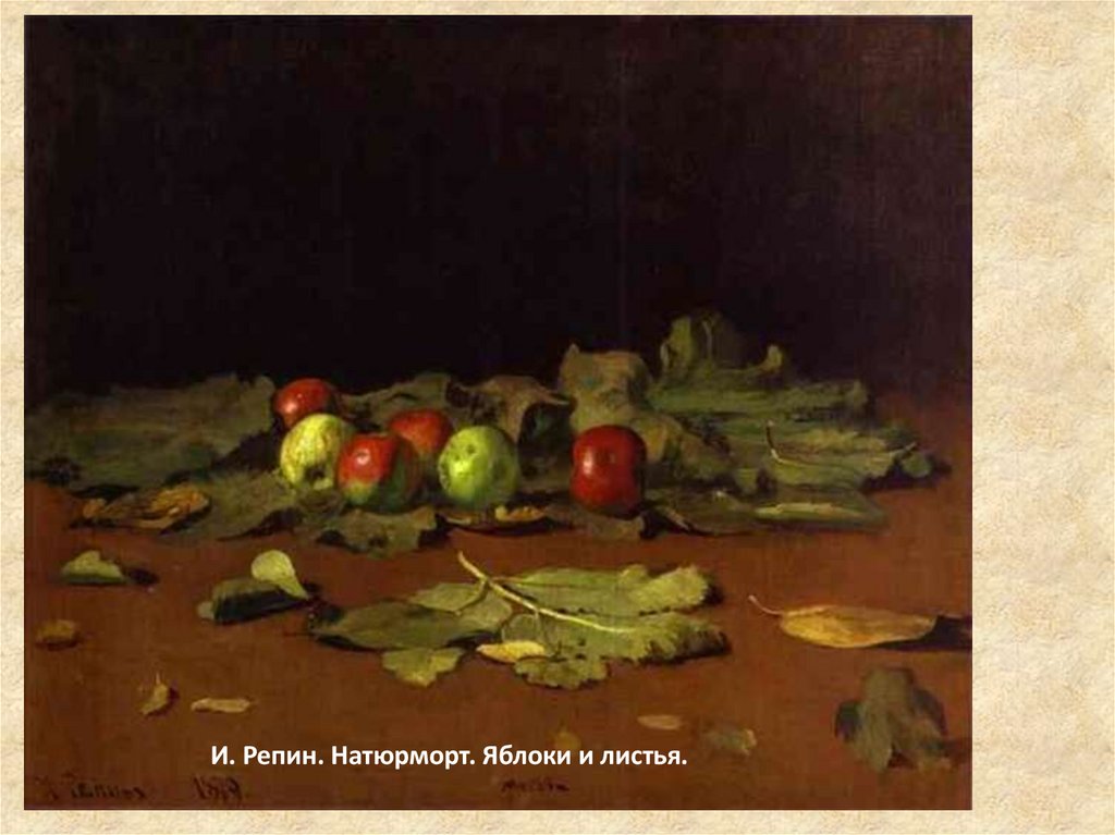 И. Репин. Натюрморт. Яблоки и листья.26.