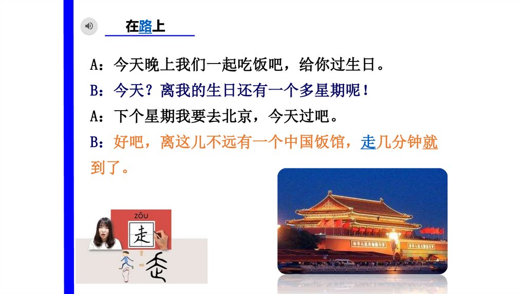 在路上A 今天晚上我们一起吃饭吧 给你过生日。