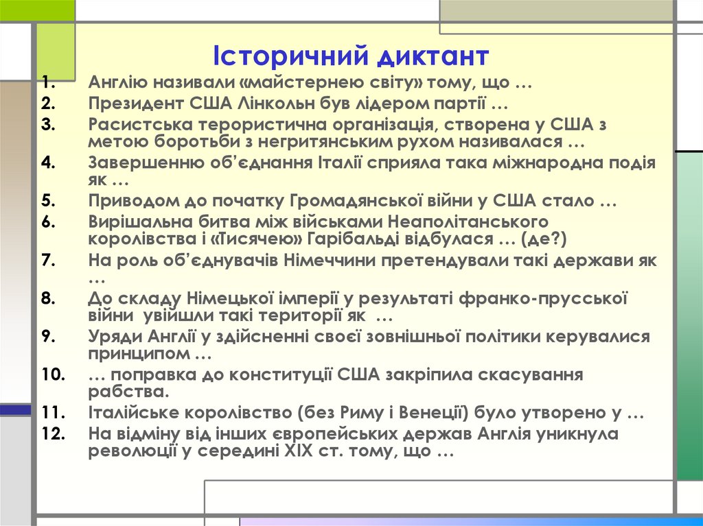 □ Хто став королем об’єднаної Італії?Королева Англії у1837-1901 рр. - …