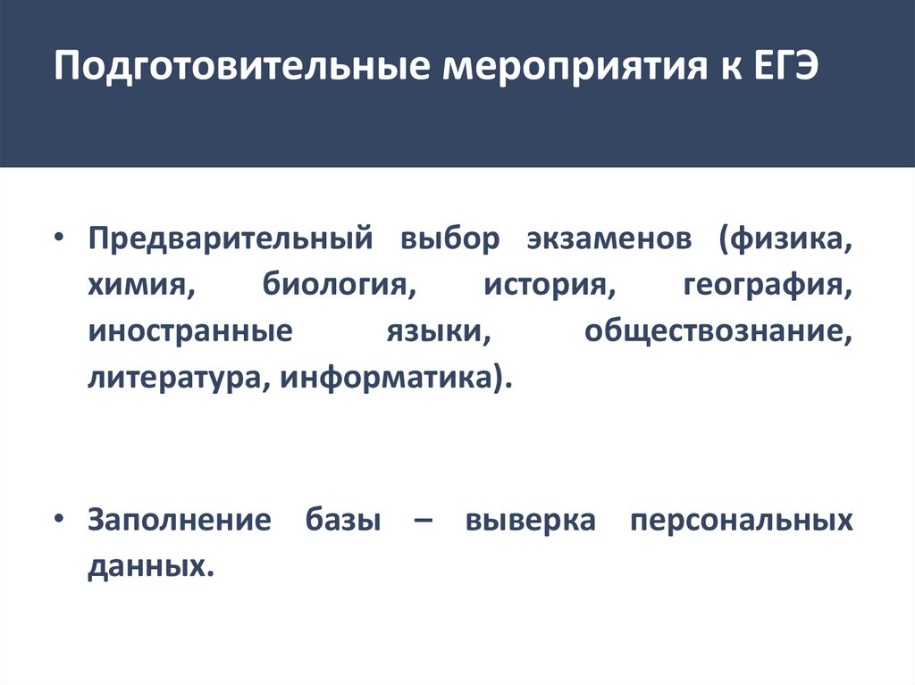 Подготовительные мероприятия к ЕГЭ• Предварительный выбор экзаменов (физика,