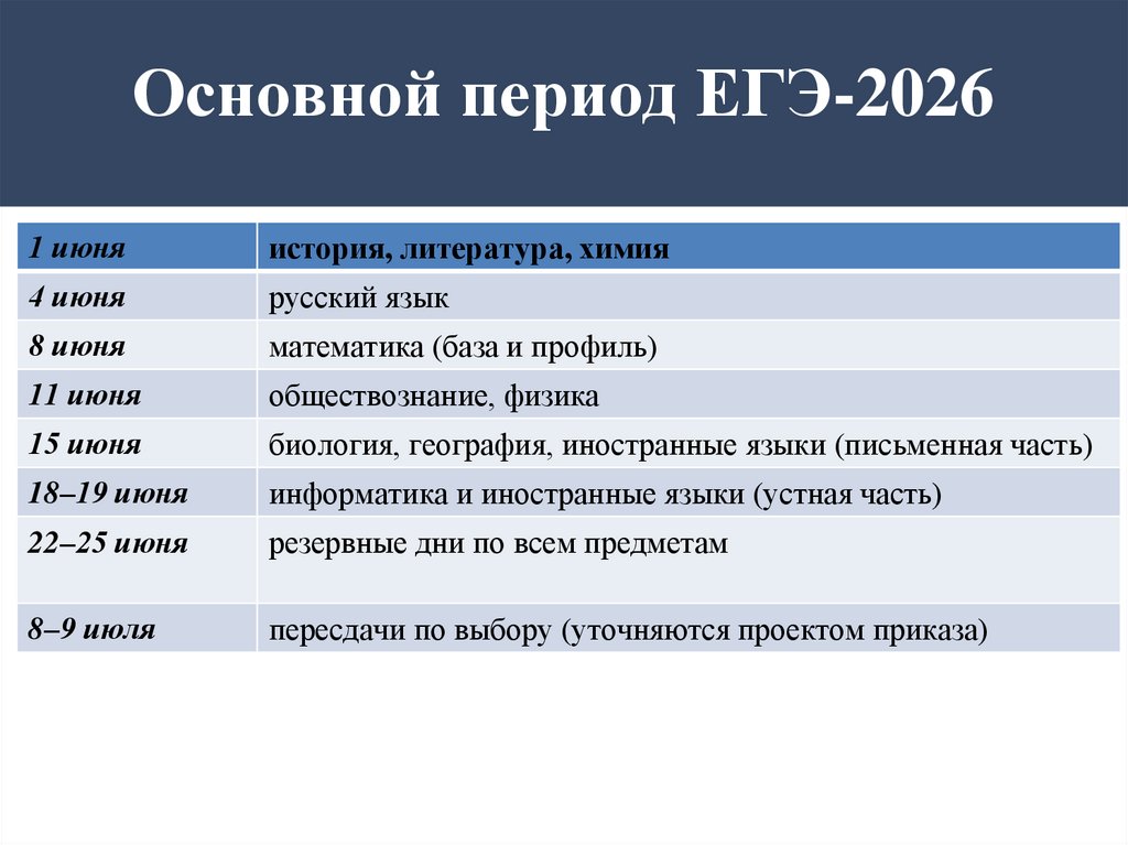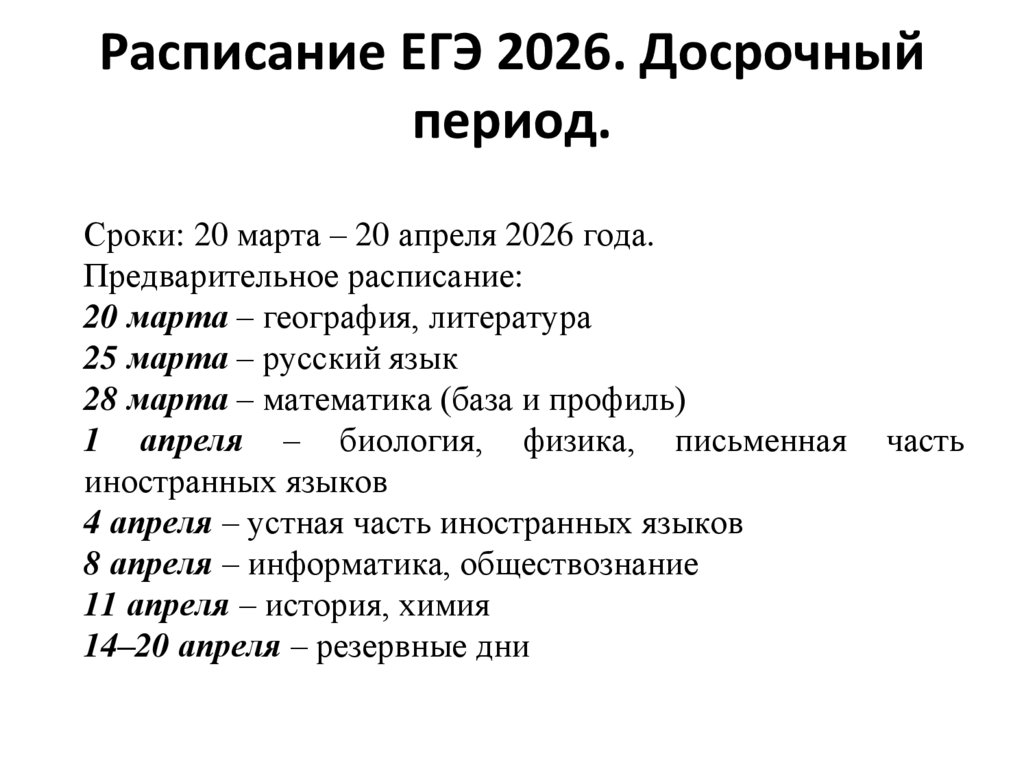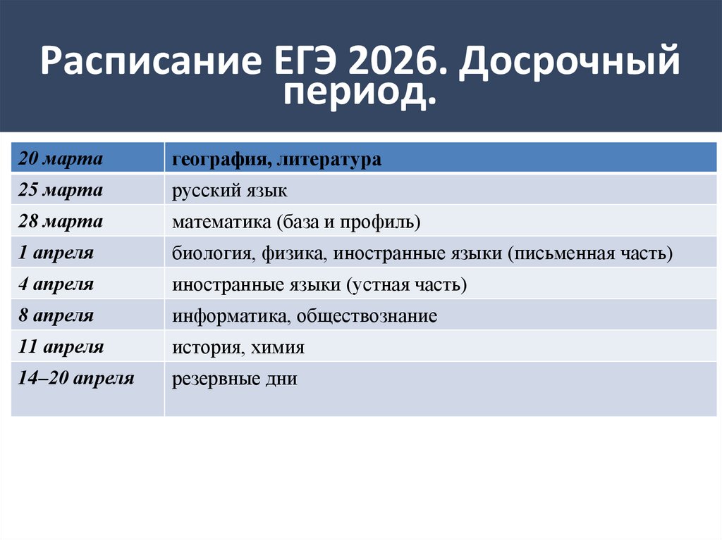 Расписание ЕГЭ 2026. Досрочныйпериод.