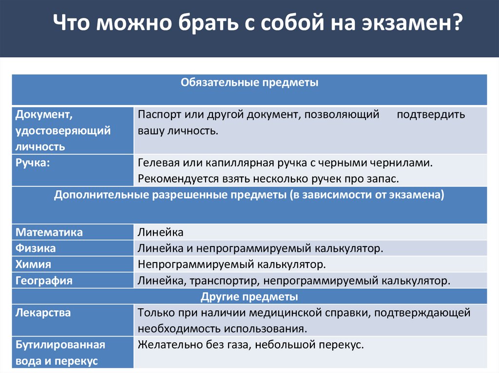 Дополнительные разрешенные предметы (в зависимости от экзамена)