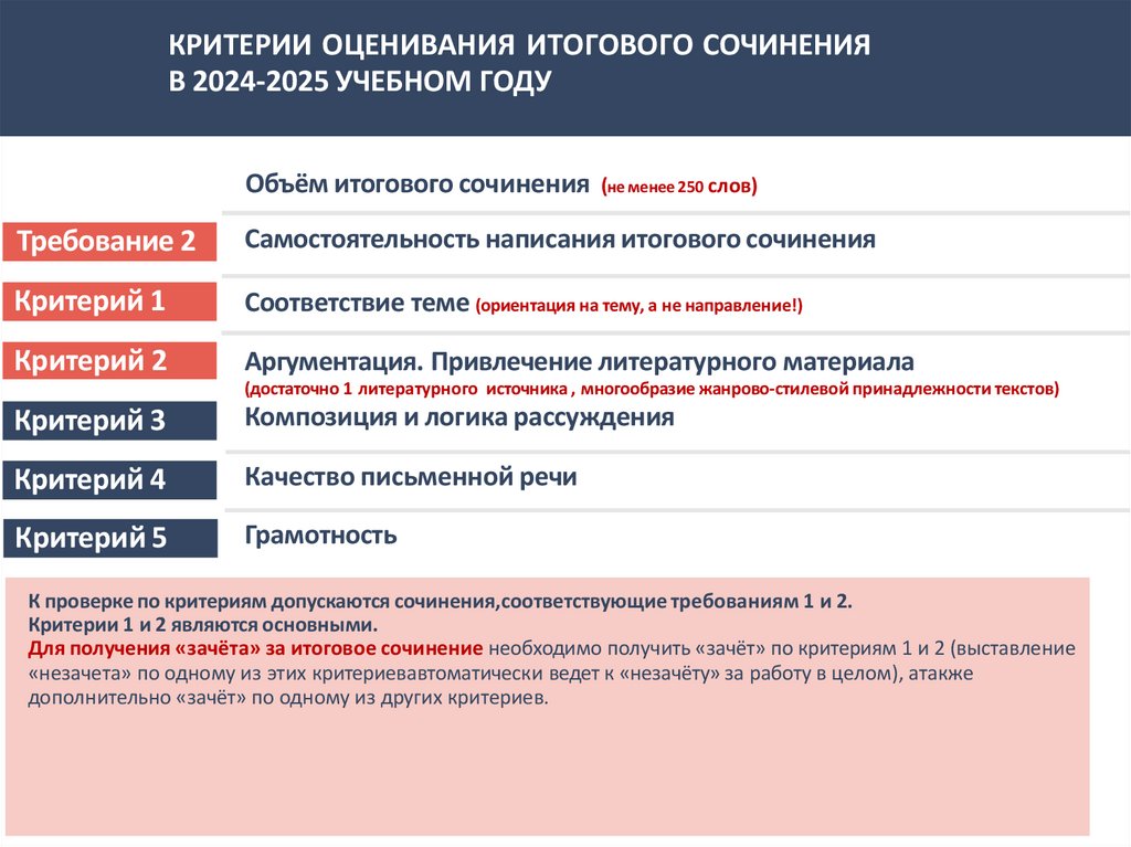 КРИТЕРИИ ОЦЕНИВАНИЯ ИТОГОВОГО СОЧИНЕНИЯВ 2024-2025 УЧЕБНОМ ГОДУ
