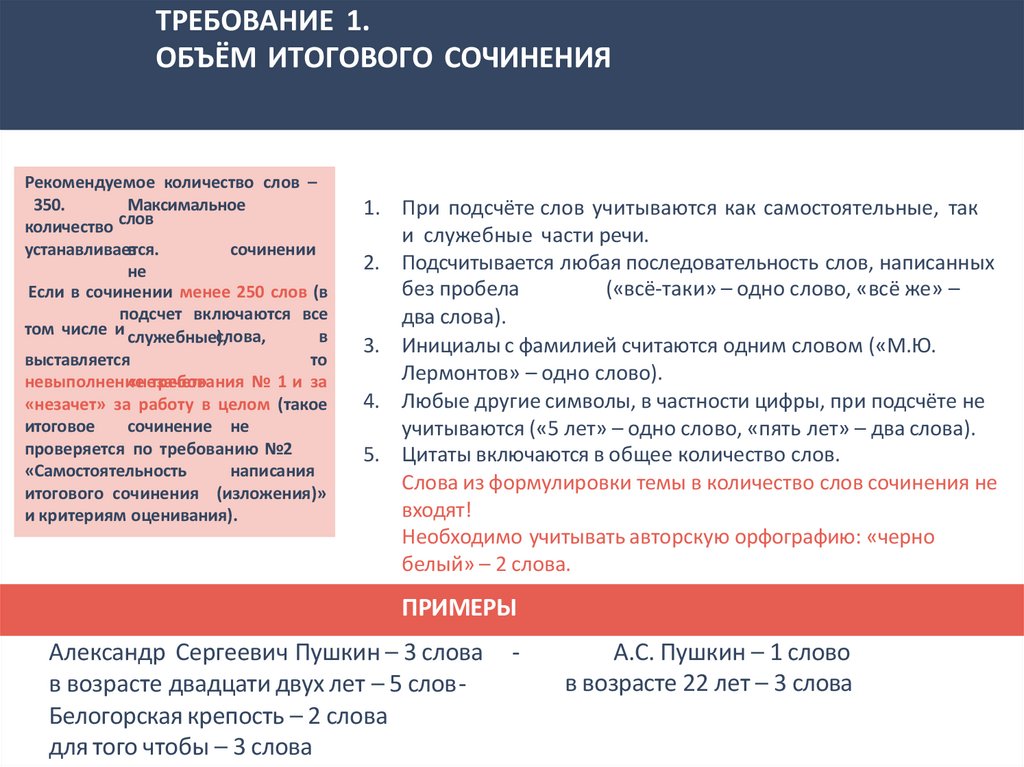 ТРЕБОВАНИЕ 1.ОБЪЁМ ИТОГОВОГО СОЧИНЕНИЯ