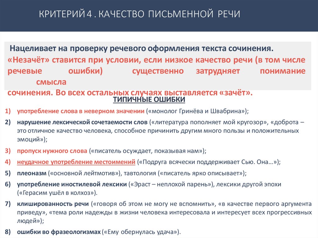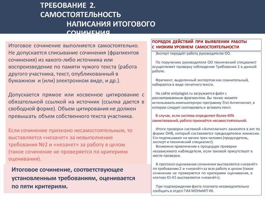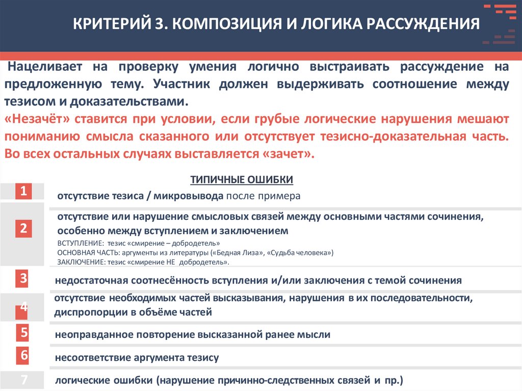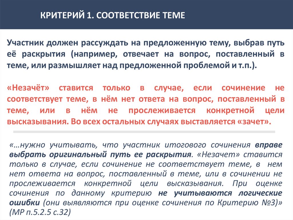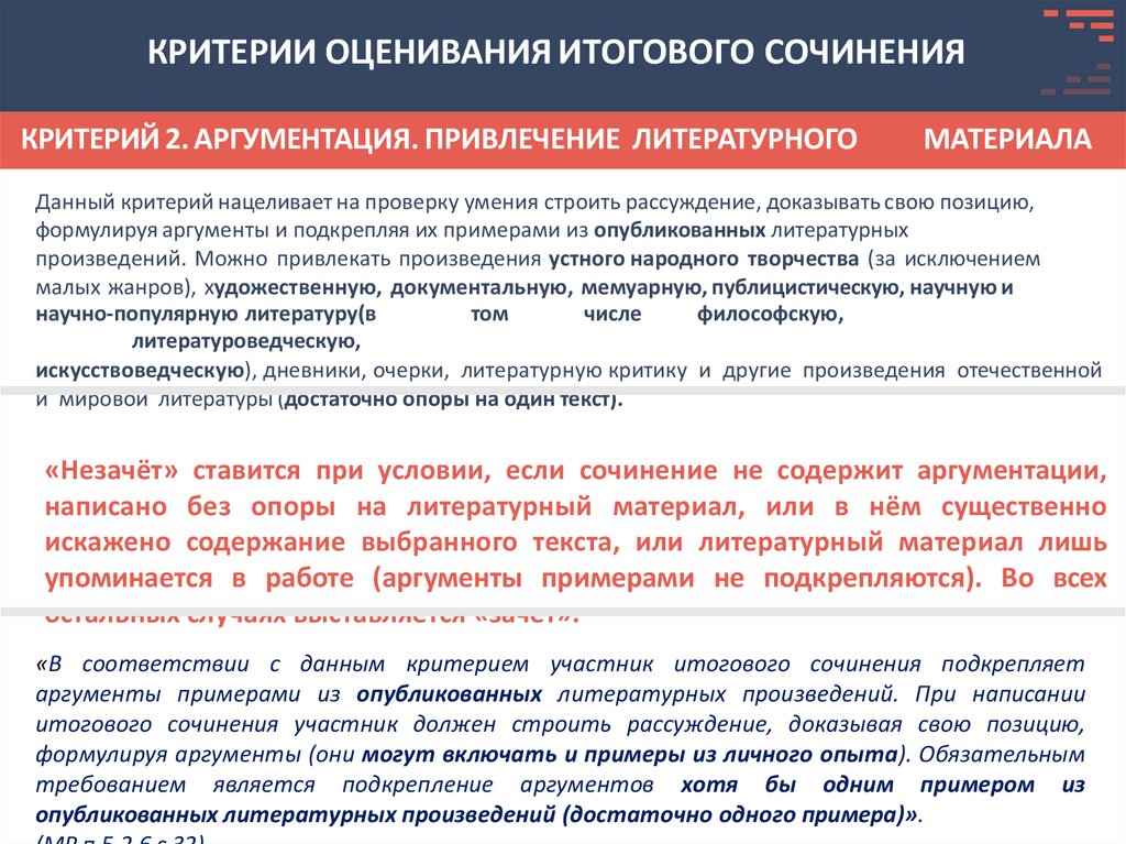 Для получения «зачёта» за итоговое сочинение необходимо получить «зачёт» по критериям 1 и 2 (выставление