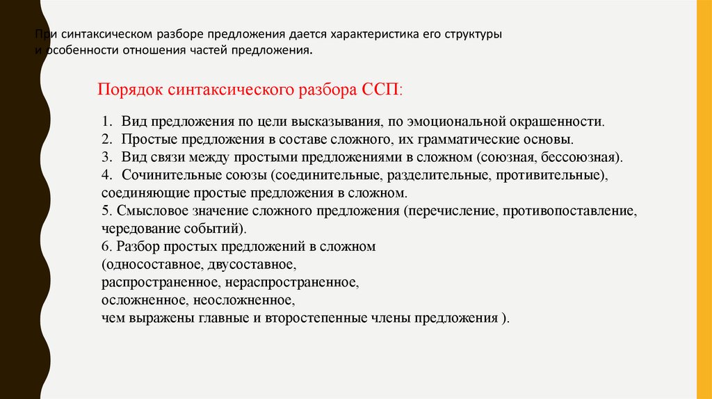 Порядок синтаксического разбора ССП: