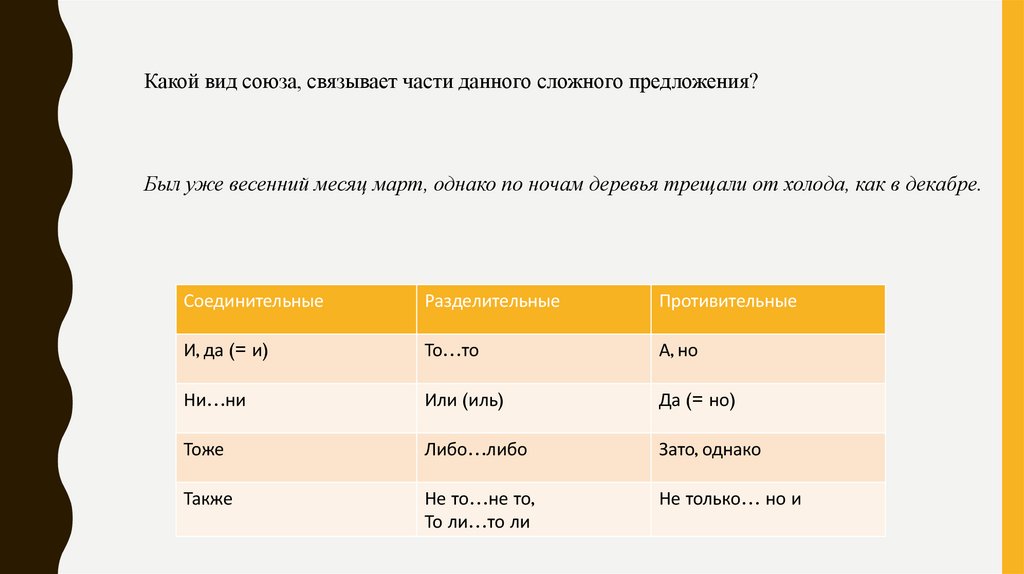 разделительные, противительные), синтаксический и пунктуационный разбор.