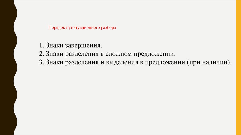 Порядок пунктуационного разбора1. Знаки завершения.