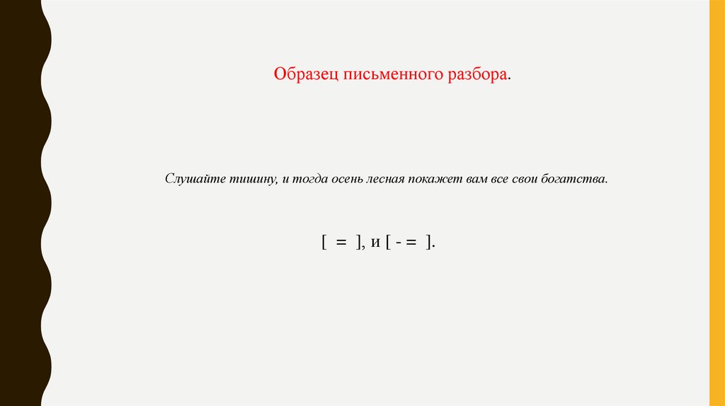 Образец письменного разбора.Слушайте тишину, и тогда осень лесная покажет вам все свои богатства.