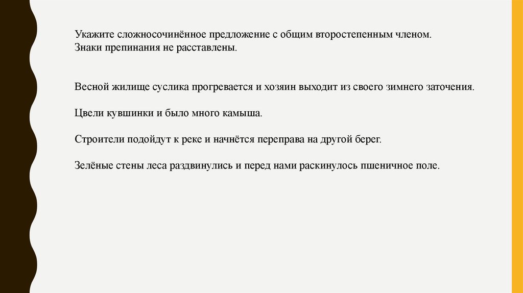 Урожайный сгибается колос, и пшеница стеною встаёт. (Последовательность)