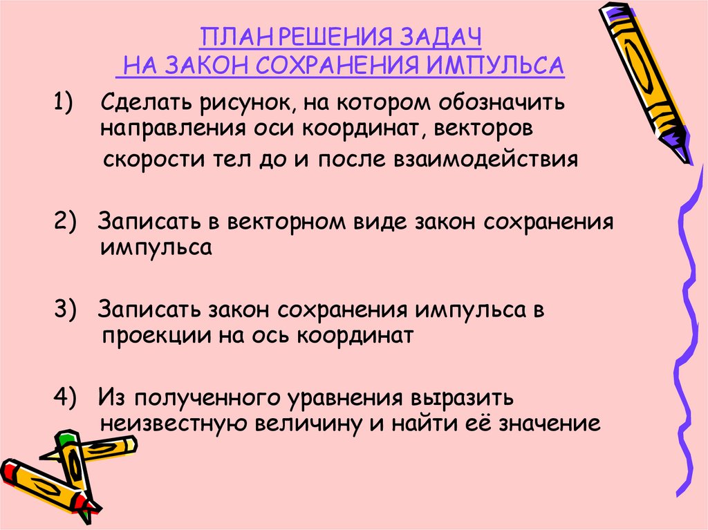 ПЛАН РЕШЕНИЯ ЗАДАЧНА ЗАКОН СОХРАНЕНИЯ ИМПУЛЬСА