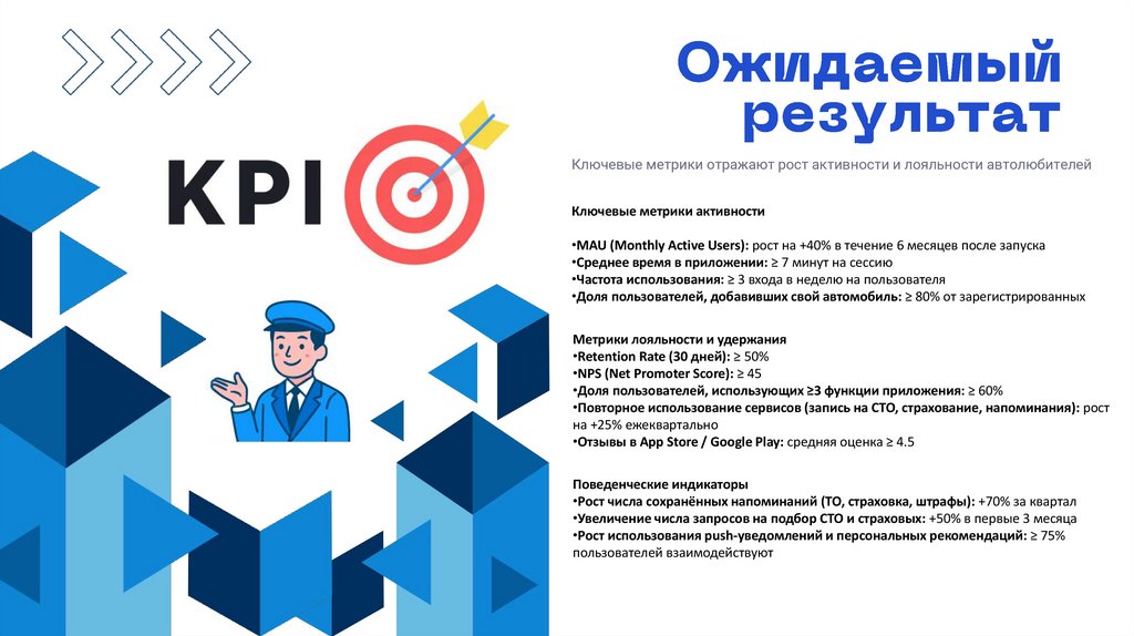 •Доля пользователей, использующих ≥3 функции приложения: ≥ 60%