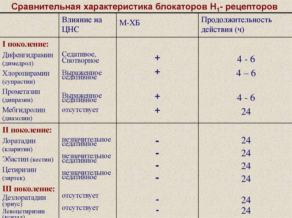 Сравнительная характеристика блокаторов Н1- рецепторовВлияние на