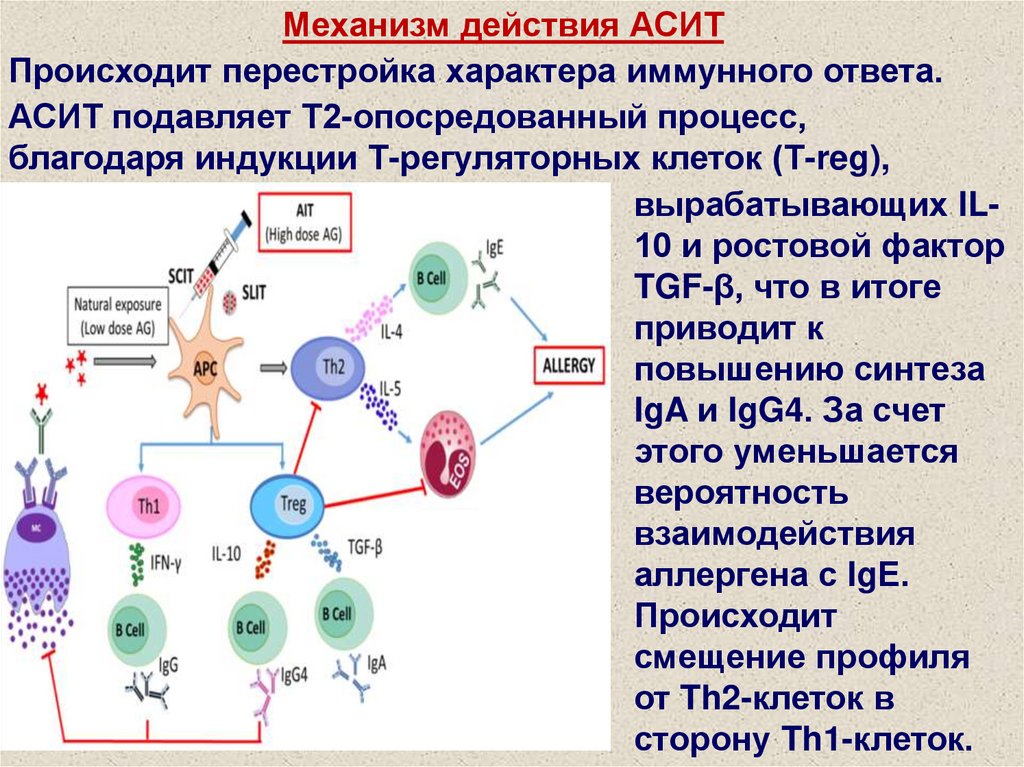 Механизм действия АСИТПроисходит перестройка характера иммунного ответа.