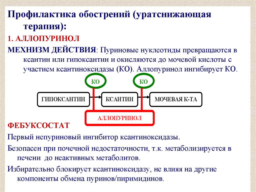 участием ксантиноксидазы (КО). Аллопуринол ингибирует КО.