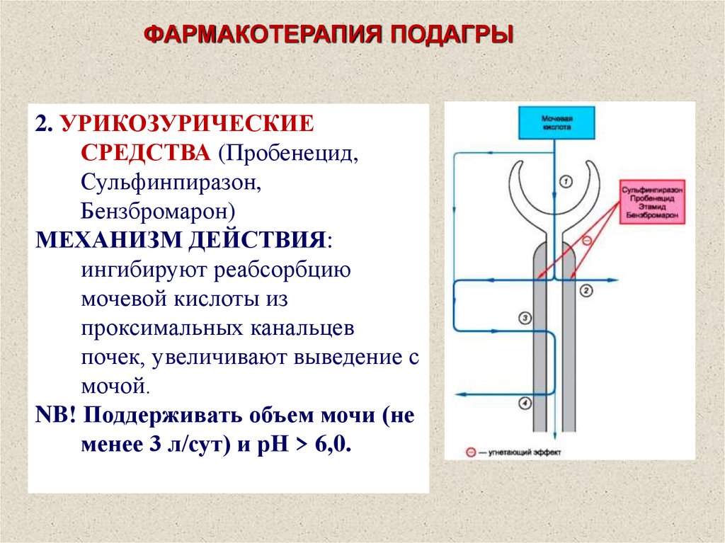 ФАРМАКОТЕРАПИЯ ПОДАГРЫ2. УРИКОЗУРИЧЕСКИЕ