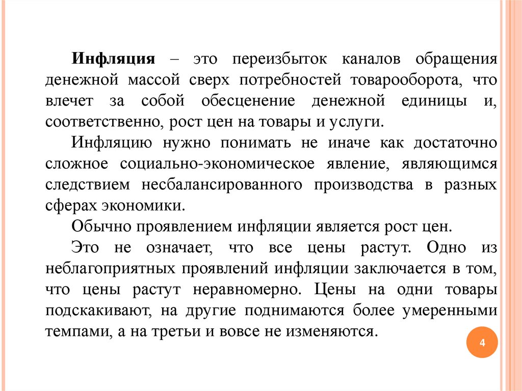 Инфляция – это переизбыток каналов обращенияденежной массой сверх потребностей товарооборота, что