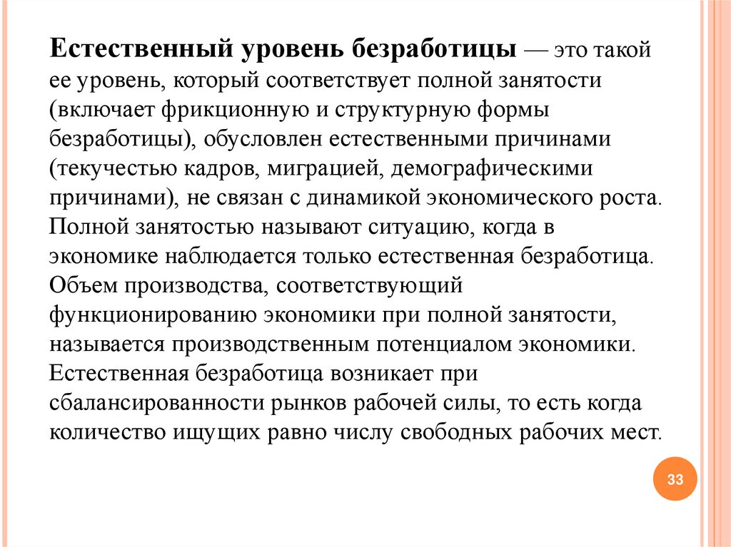 Естественный уровень безработицы — это такойее уровень, который соответствует полной занятости