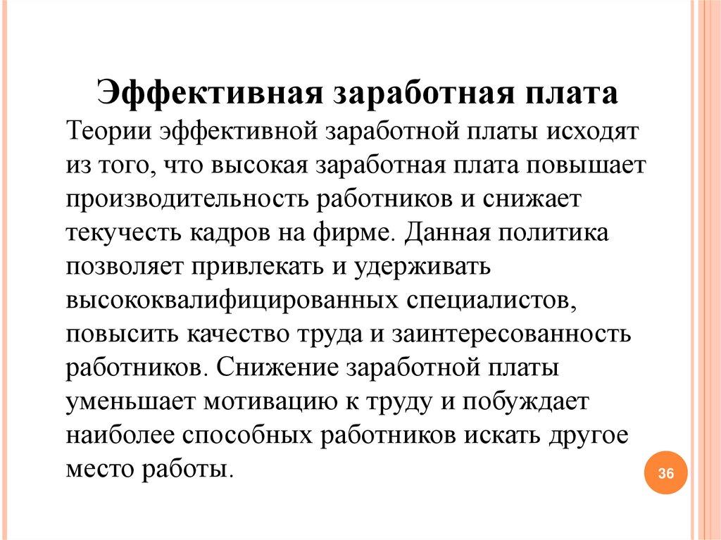 Эффективная заработная платаТеории эффективной заработной платы исходят