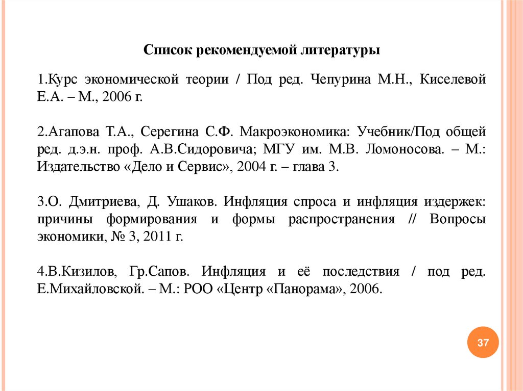 Список рекомендуемой литературы1.Курс экономической теории / Под ред. Чепурина М.Н., Киселевой