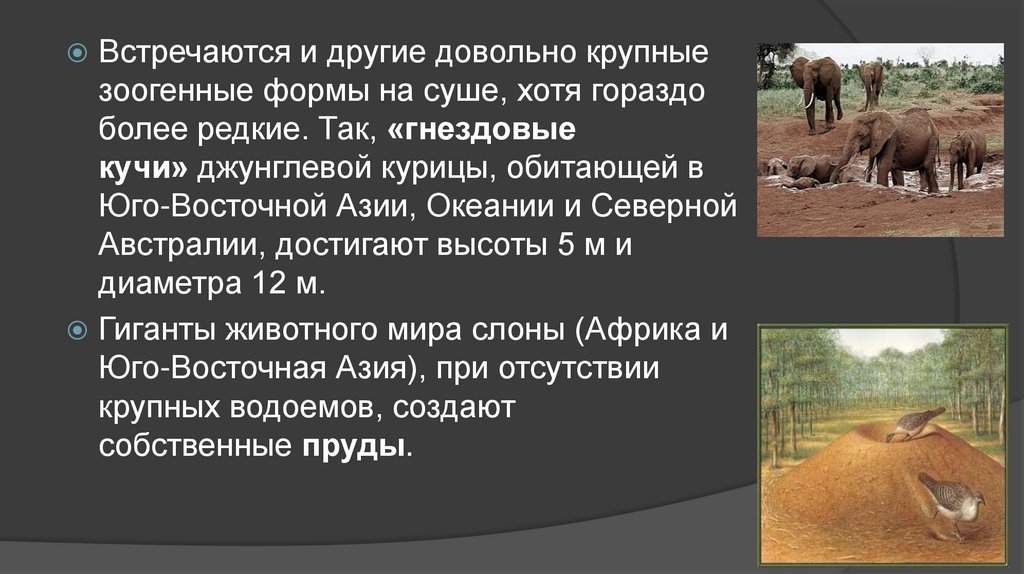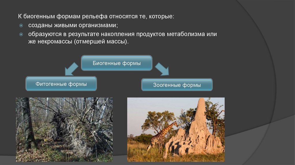 К биогенным формам рельефа относятся те, которые:созданы живыми организмами;