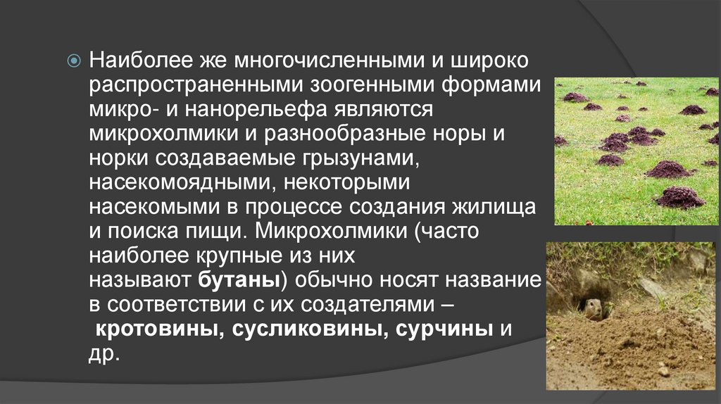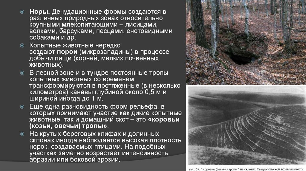 Норы. Денудационные формы создаются вразличных природных зонах относительно