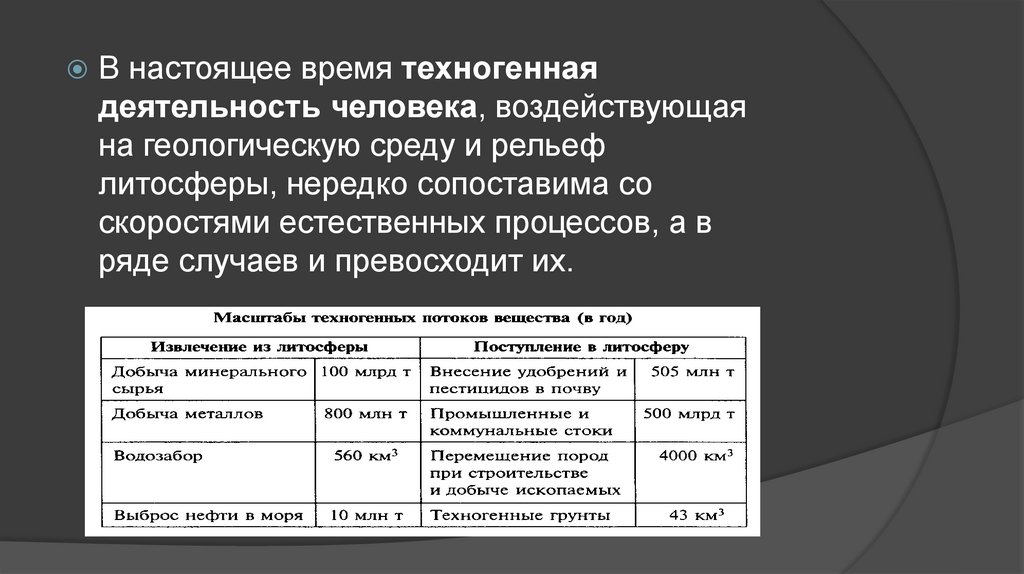 В настоящее время техногеннаядеятельность человека, воздействующая