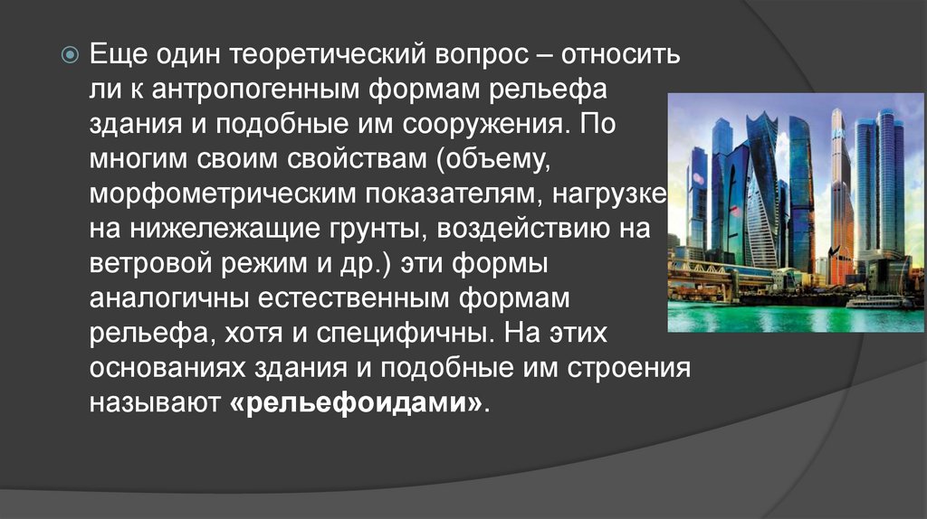 Еще один теоретический вопрос – относитьли к антропогенным формам рельефа