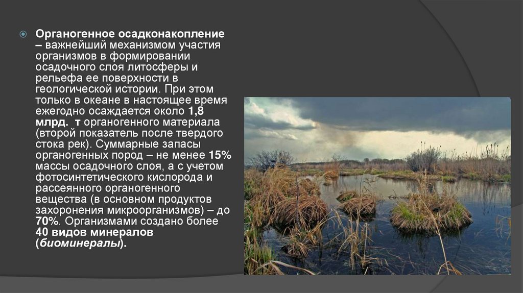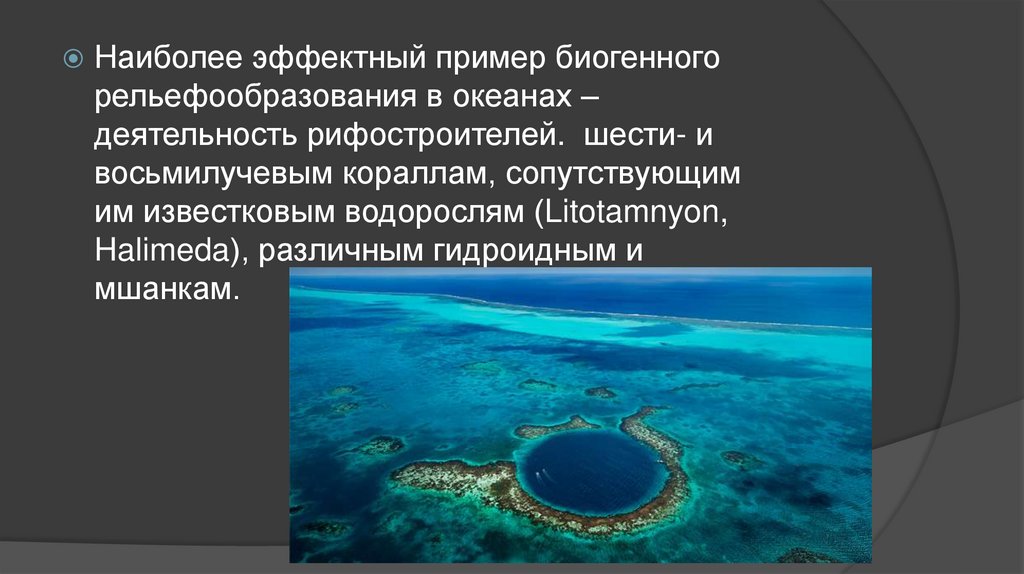 Проявления деятельности организмов в геологической жизни ирельефообразовании в океане. В результате жизнедеятельности и