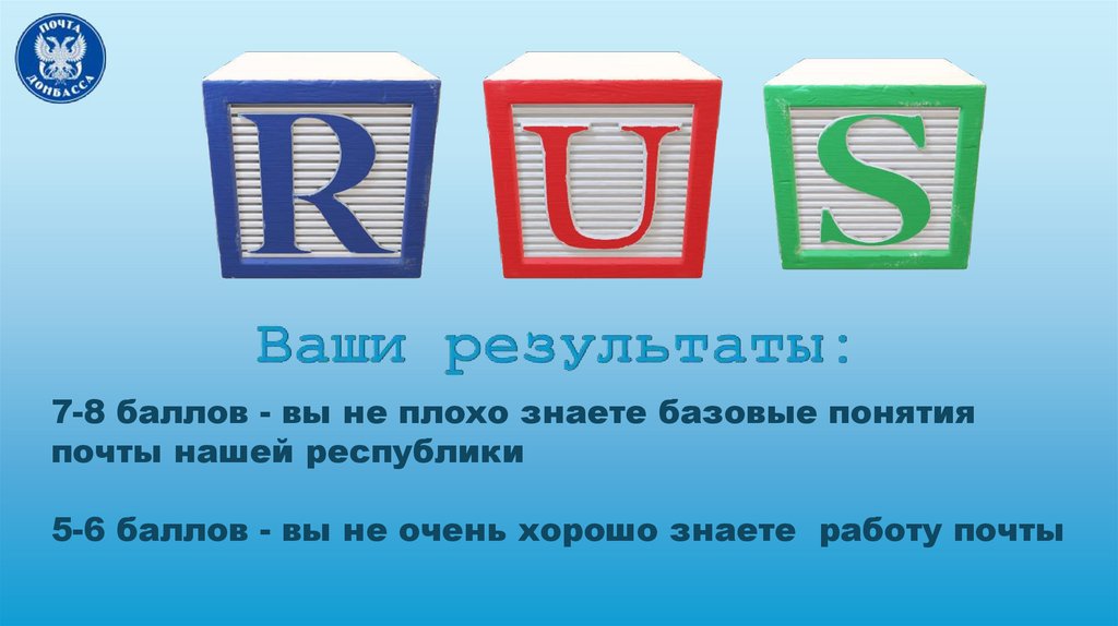 7-8 баллов - вы не плохо знаете базовые понятияпочты нашей республики