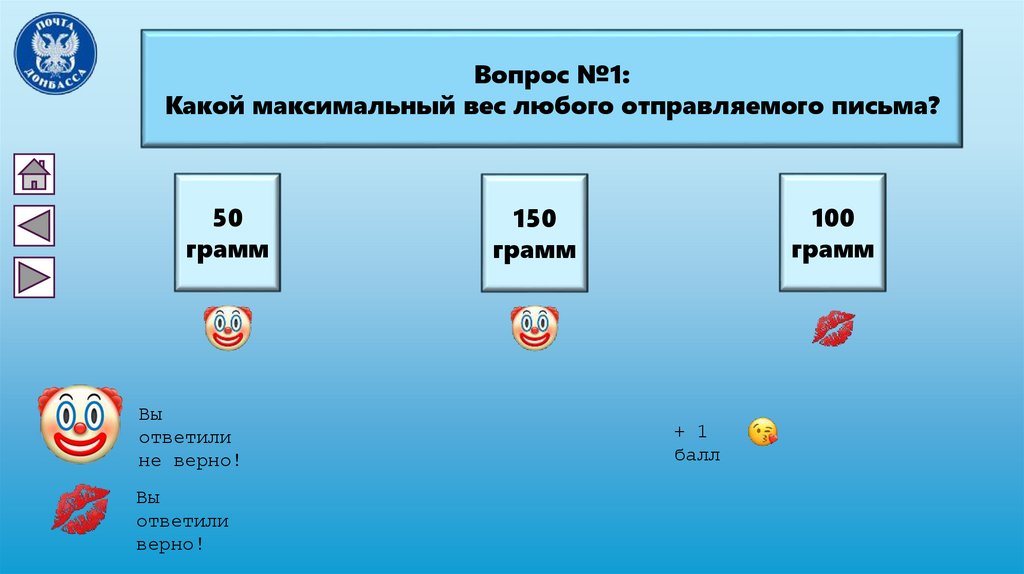 Вопрос №1:Какой максимальный вес любого отправляемого письма?