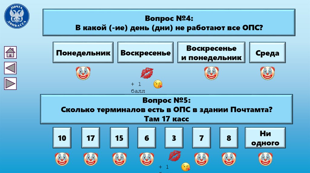 Вопрос №4:В какой (-ие) день (дни) не работают все ОПС?
